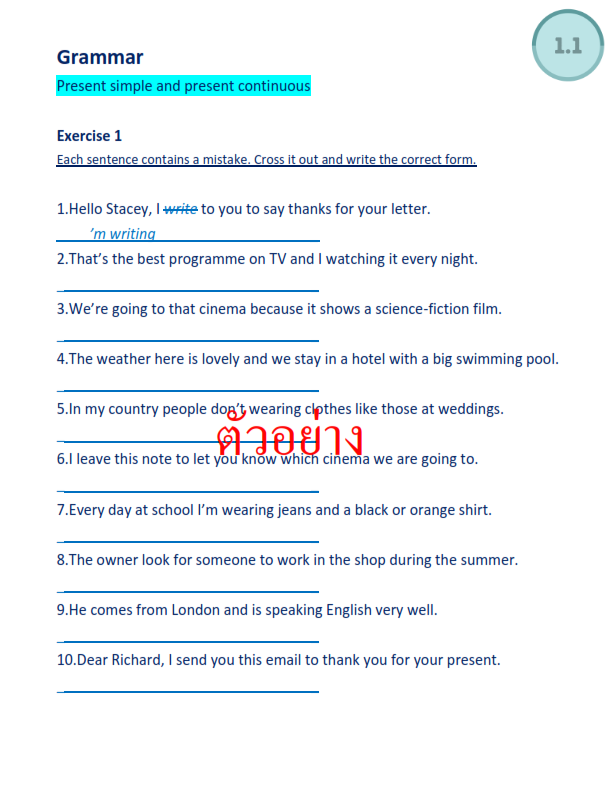 *หลังจากสั่งซื้อและได้รับเอกสารแบบฝึกหัดแล้ว รบกวนแจ้งครู เพื่อแชร์ไฟล์วิดิโอให้ค่ะ