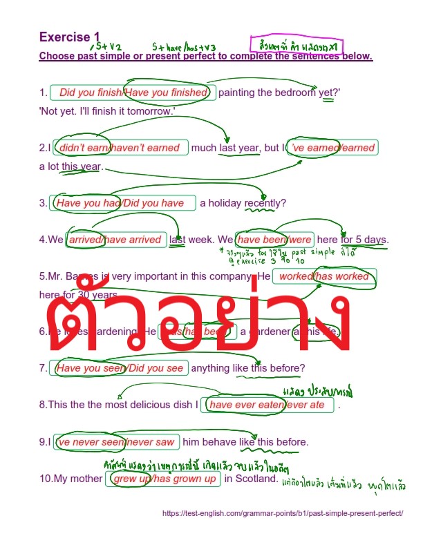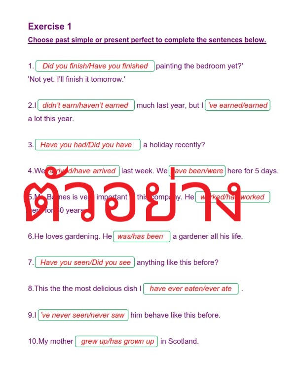 แบบฝึกหัดทั้งหมด 4 exercises เจาะเรื่อง Past simple or present perfect